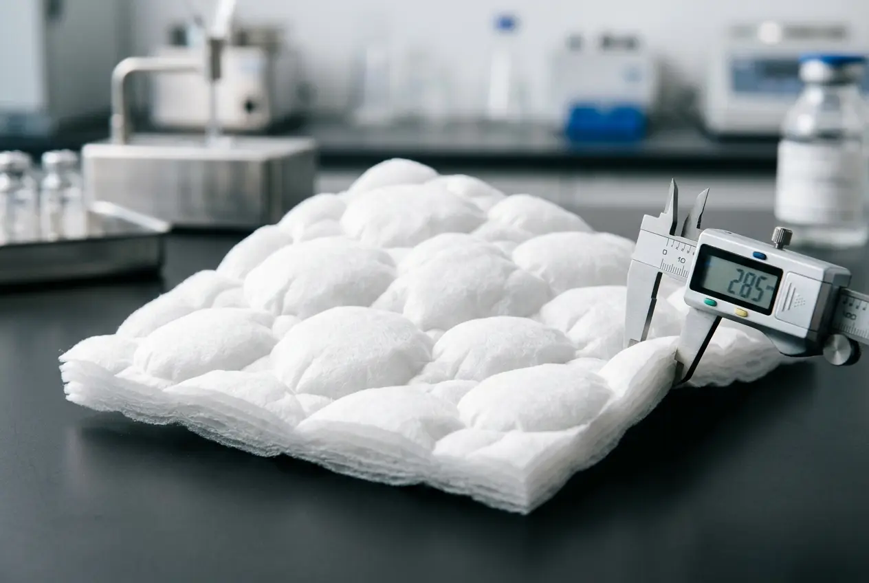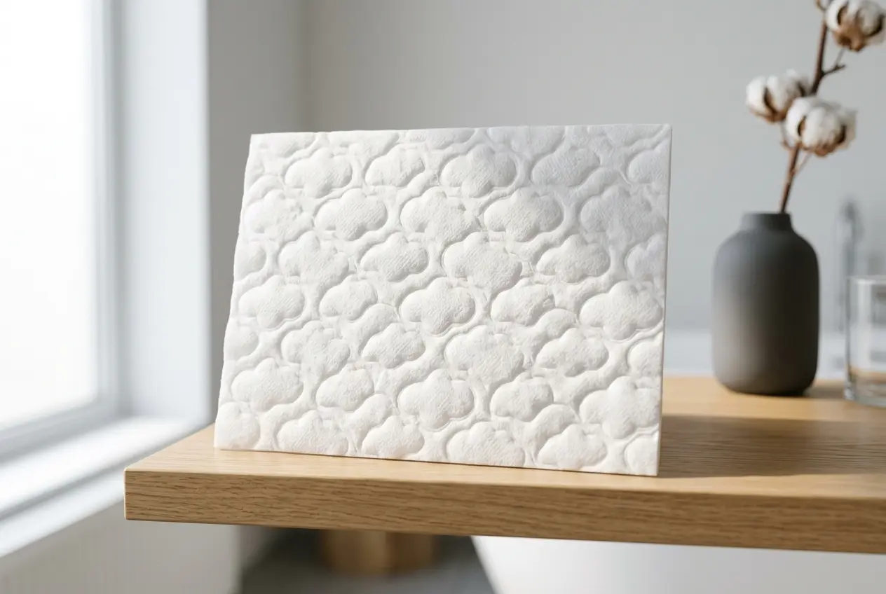 The embossing process traps air within the fabric structure, increasing apparent thickness and softness. A nonwoven product can be made to feel substantially more substantial without adding material weight.