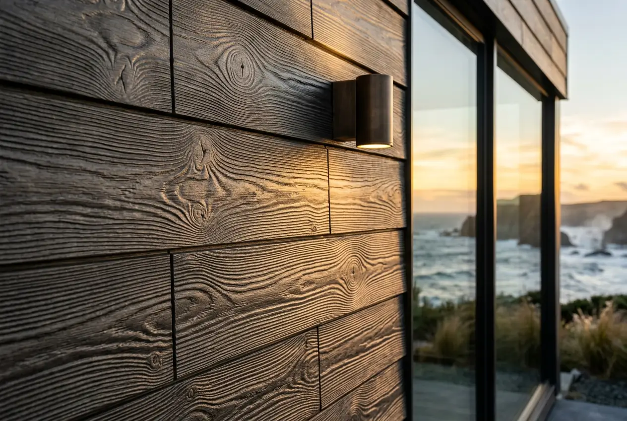 Embossed cladding creates visual depth perception that flat sheet cannot a surface that reads as three-dimensional and responds to light in a way that makes it look more natural and more considered.